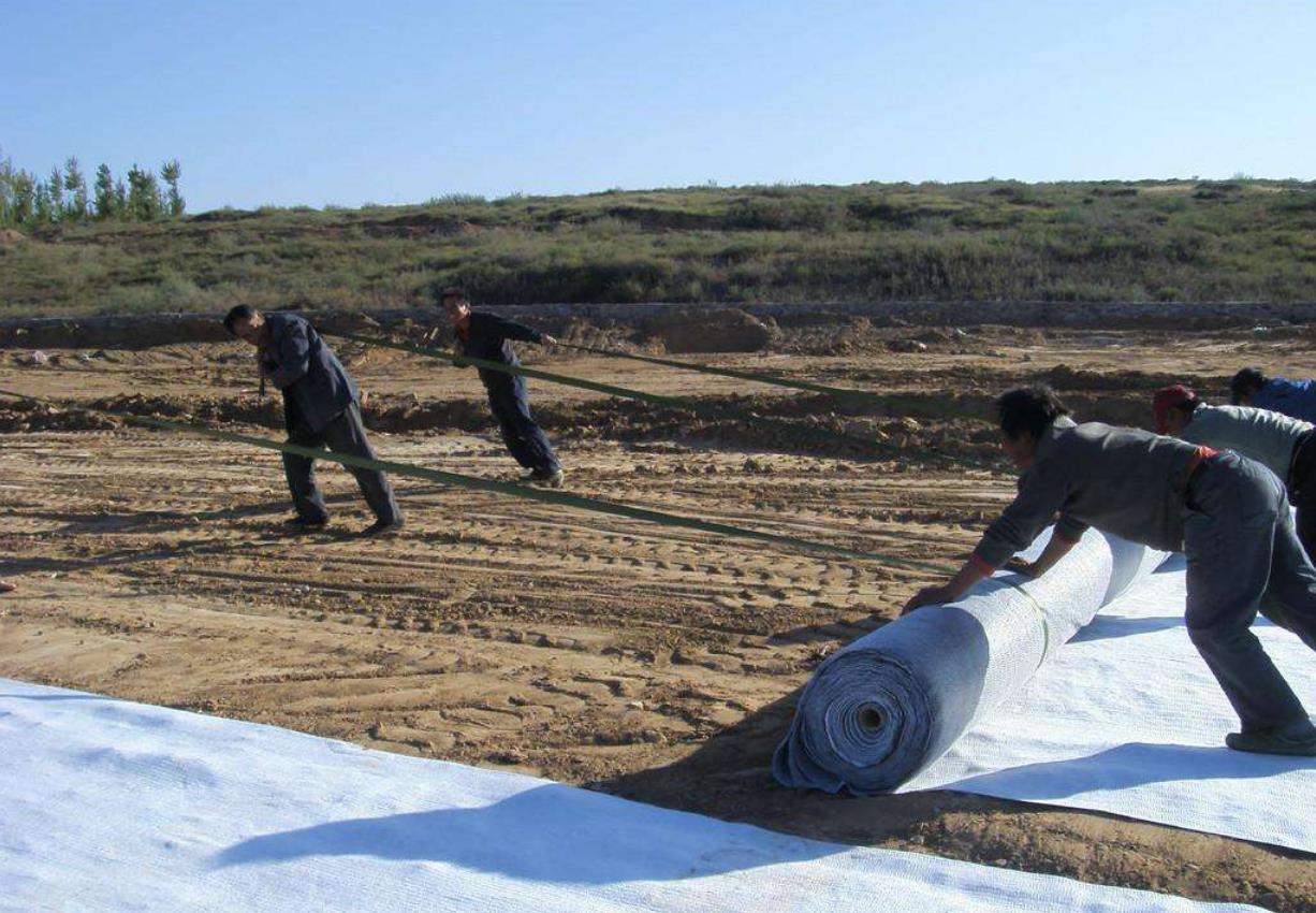 1)基层可分为软基和硬基。铺设GCL前要采用必要的设备将基层整平夯实,压实度达85%以上,表面应平整光滑,不能有凸出2cm以上的岩石和其他物体,也不能有明显的空洞。